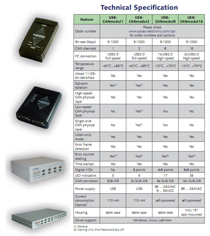 Do you need a high-performance, user-friendly, and adaptive hardware interface for the development, simulation, testing, and maintenance of CAN-bus networks? Then the USB-CANmodul series of SYS TEC provide you the ideal solution for use with notebook, desktop or industrial computer.